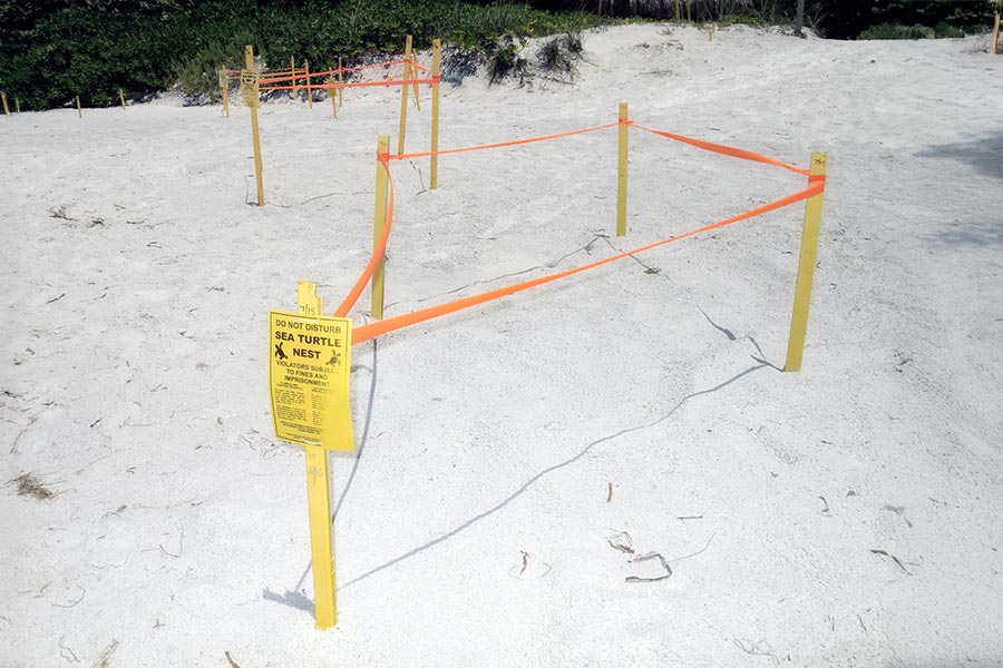 Most nesting happens overnight. Several species, including the loggerhead sea turtle, come ashore under the cover of darkness to nest in the sand. By early morning, the nesting areas along the shoreline are easy to spot. Tracks in the sand lead to nests that are then roped off and carefully monitored, giving the hatchlings the best possible chance of reaching the water.
